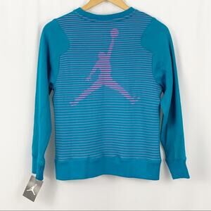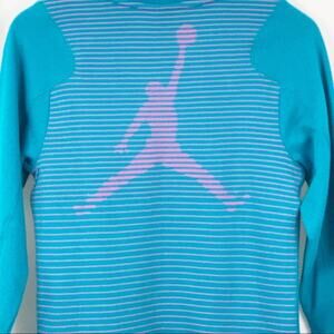 Teal, Blue with Pink Air Jordan Logo and Black 'Jordan' Lettering