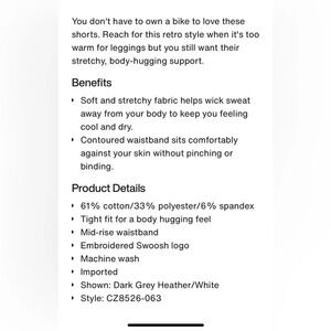 NWT Nike Tight For Mid Rise Short Length Bike Shorts Gray Size XS