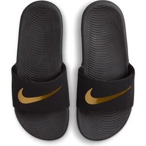NWT Nike Unisex Kawa Slide Sandal, Black/Metallic Gold, 5 Big Kid