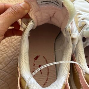 Chic Nike shoes in white and pink with tan details. Ideal for everyday style. New With Tags (no box). Size 5.5