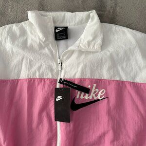 NWT Nike Windrunner Windbreaker Loose Fit Jacket Women's LARGE Pink Gray White