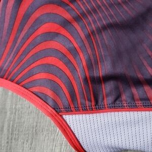 NWT Nike Women Dri-Fit Workout Top Black Red M - Women's workout top. Dri-fit fabric with  built-in shelf bra. NWT, never worn.  Eye-catching black/red optic pattern.  Breathable fabric side panels.  Sz M