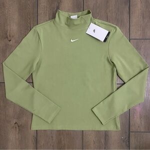 NWT Nike Women's Activewear Long Sleeve Mock Neck Layering Tee in Green sz M