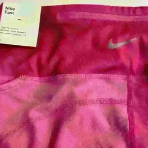 New with tags. Nike Women’s Dri-Fit Fast Mid Rise, 7/8 Length, Printed Leggings. Color: Pink. Size M.