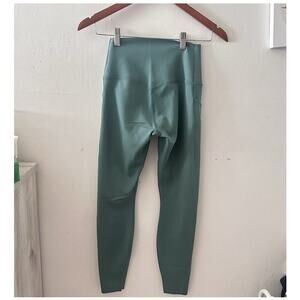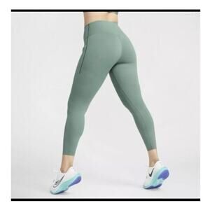 Elevate your activewear game with these Nike Universal Women's Dri-Fit leggings. These compression leggings are perfect for any athletic occasion, whether it's a day at the gym or a run outside. The leggings feature a solid sage teal color and a skinny leg style, with a comfortable and flattering fit.