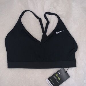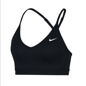 Women's Nike Indy Sports Bra offers light support during low-impact, high-enegry workouts such as pilates, barre and yoga. The low-cut design and thin, adjustable straps provide feminine detail while the back mesh panel offers breathability