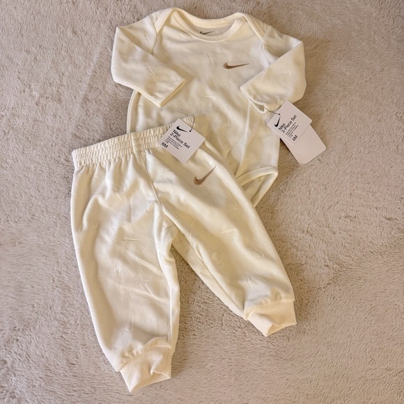 NWT Nike soft velour embossed two piece pale ivory set size 6 months