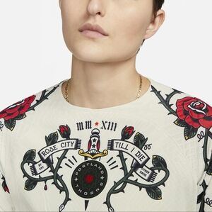 Additional tags: rose retro tattoo style thorn vine dagger graphic print rose city till I die by any other name authentic football club soccer jersey Providence TikTok swoosh emblem engineered 23 blokecore bloke