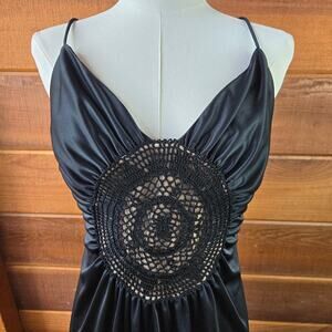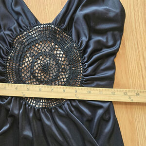 NWT Niki Livas Vintage 90s Y2K Crochet Ruched Low Back Dress 2 Fairy Grunge Whimsigoth Festival Goth Witchy Baddie LBD Deadstock