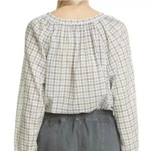 NWT Nili Lotan Brooke Check Plaid Cotton Blouse Top Shirt Size Small Grey White