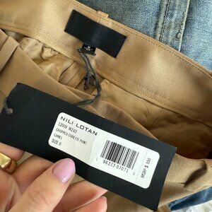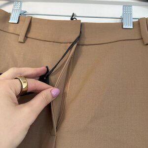 NWT Nili Lotan Cropped Corette Twill Pants In Camel Wool Blend Straight Leg Sz 0