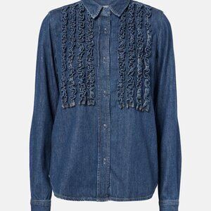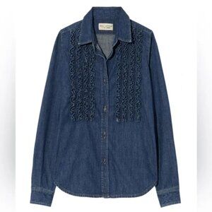 NWT Nili Lotan Lexa Denim Ruffle Shirt, Size Medium