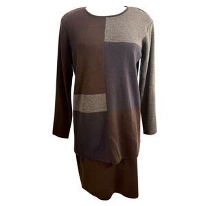 NWT Nina Leonard 2-Pc Set Color Block Sweater & Solid Skirt Sz. Large