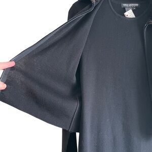 NWT Nina Leonard Black Sweater Jacket Dress Long Sleeves Leopard Collar Size M
