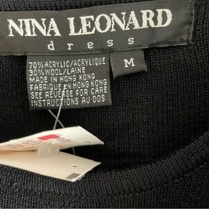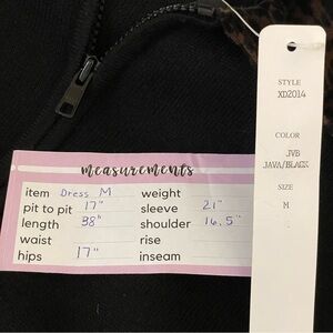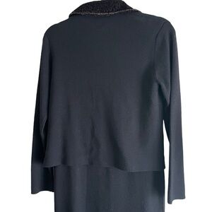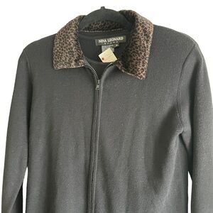 NWT Nina Leonard Black Sweater Jacket Dress Long Sleeves Leopard Collar Size M