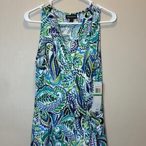 NWT Nina Leonard Green Multi Print Surplice Wide Leg Crop Jumpsuit Womens Large