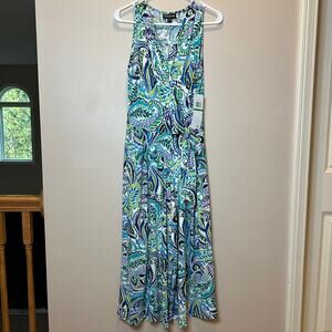 NWT Nina Leonard Green Multi Print Surplice Wide Leg Crop Jumpsuit