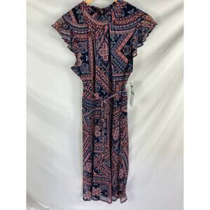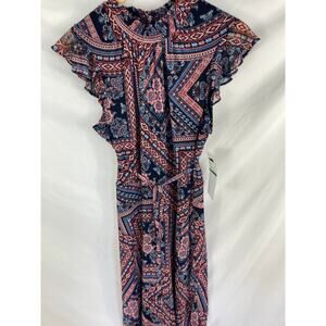 NWT Nina Leonard Mock Neck Flutter Sleeve Midi Dress Size Large