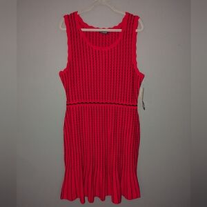 NWT. Nina Leonard Red And Black Sleeveless Dress With Peplum Hem. Women's XL.