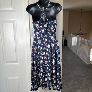 New with tags women’s nine Britton stitch fix floral spaghetti strap midi dress size small. Versatile choice for work or play. This buttery soft sleeveless dress features a v-neck and a fitted bodied that flares into a skirt giving it a flow, breezy feel. Pull on with side pockets with adjustable straps. Crisscross back.