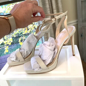 This is a new never worn stiletto heel Zadie from Nine West. Heel features, high, stiletto heel, square toe and thin adjustable angle strap. Buckle closure, faux leather, And heel is 4”. Some minor marks, not noticeable when wearing. see pictures