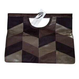 NWT Nine West Black Silver and Gray Patchwork Clutch Purse