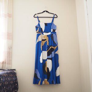NWT Nine West Blue Cut-Out Spaghetti Strap Midi Dress sz L