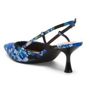 NWT Nine West Blue Floral Rindy Slingback Kitten Heels