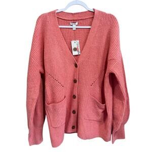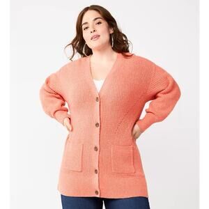 NWT Nine West Coral Orange Knit Button Front Cardigan Sweater Womens Size XL NEW
