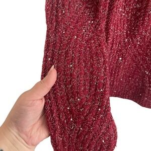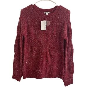 NWT Nine West Dark Red Crewneck Sweater w/Tinsel & Sequins