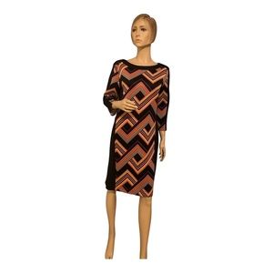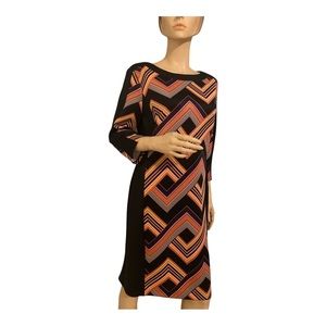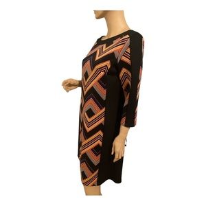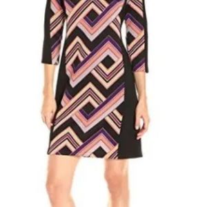 NWT Nine West Elderberry Cognac Stretch Scuba Boatneck Solid Panel Shift Dress -