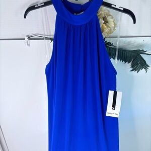 NWT Nine West Elegant Halter neck Sleeveless Knee Length Dress Size 12 Surf Blue