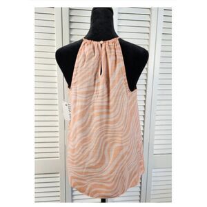 NWT Nine West Halter Top Blouse Blush Pink Flowy Keyhole Size S/XS