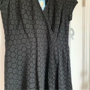NWT Nine West Happy Hour Black Crochet Cap Sleeve V-neck Dress