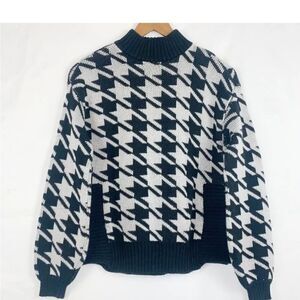 Women's Nine West Houndstooth Mock Neck Sweater Black White Side Slit Knit Size XXL