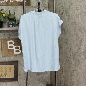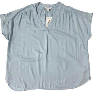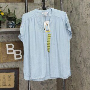 NWT Nine West Lightweight Relaxed Fit Woven Popover V-Neck Top 49009932 M Blue