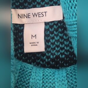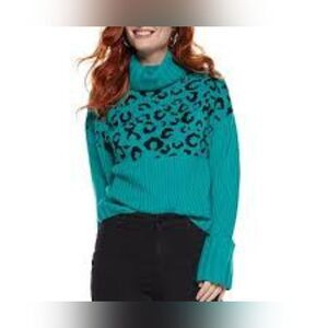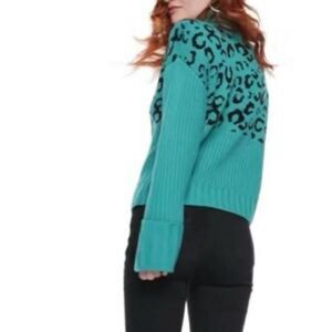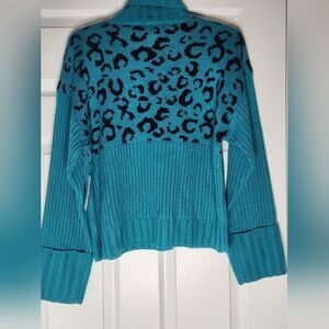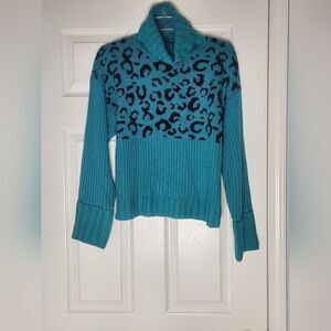 NWT Nine West M TurquoisBlackRibbed LeopardKnit Cropped Turtleneck Women Sweater