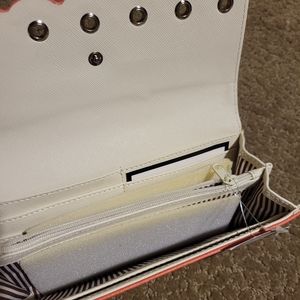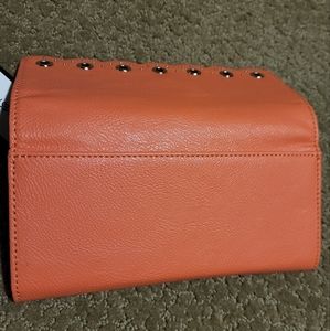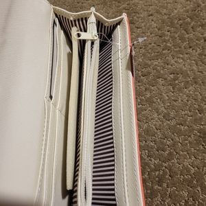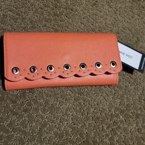 NWT Nine West Peach Scallop Clutch/Wallet; snap closure; card slots; zipper change pocket; good size compartments; peach/salmon color