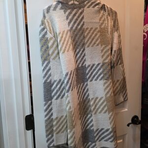 NWT Nine West Plaid Sweater. size M. has 2 pockets and long sleeves. open cardigan with no closure. cream, tan and gray Plaid.