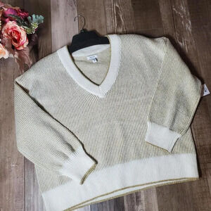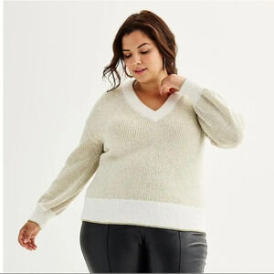 NWT Nine West Plus Size V-Neck Shine Pullover Sweater Daisy Dew Size 1X