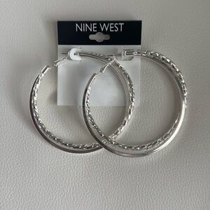 NWT Nine West Silver Tone Overlapping Hoop Earrings