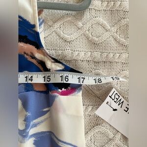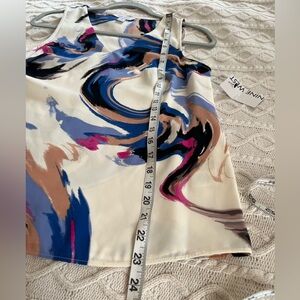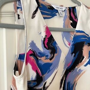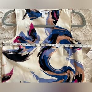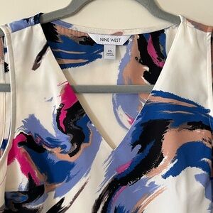 NWT brand new, never worn! Beautiful vibrant pattern, polyester blouse by Nine West. Sleeveless. Lined. Vneck. Measurements in photos. Women’s size XS