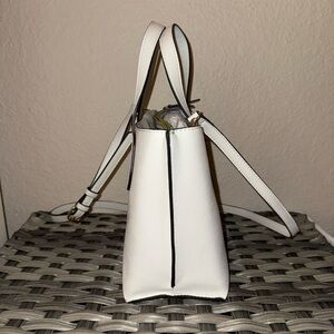 NWT Elegant Nine West crossbody bag in white with white and blue interior. Features sleek design and adjustable strap. Perfect for any occasion.
