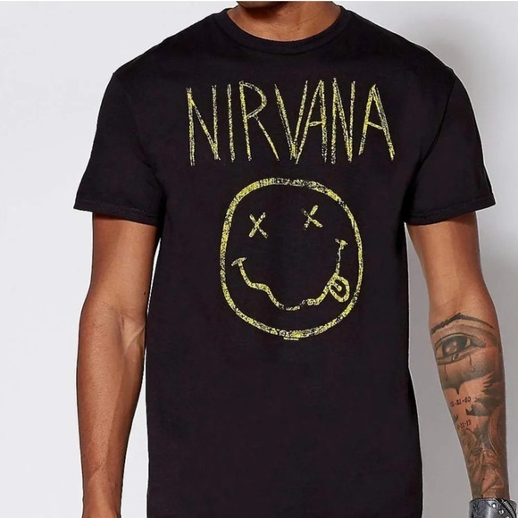 NWT Nirvana Men’s Black Smiley Face 90s Grunge Rock Band Tee Shirt Size X-Large