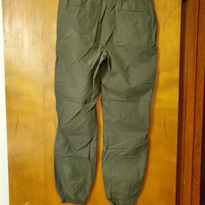 No Boundaries Army Green Tech Jogger Pants - Size S (28-30) NWT. They have a tapered leg - zipper pocket. They are 70% cotton and 30% nylon. The measurements for the waist is 29 inches, the hips are 36 inches, the rise is 10 inches and the inseam is 30 inches. There are a few marks on the back as shown in the picture.