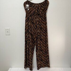 *NWT* No Boundaries Brown Black Animal Print Tribal Jumpsuit Strapless L 11/13