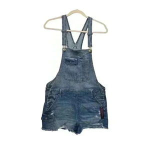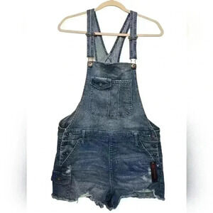 NWT No Boundaries Denim Overall Shorts Distressed Cutoffs Medium Wash *Read*