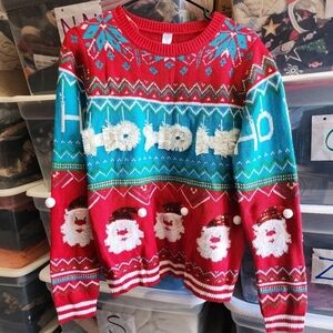 NWT No Boundaries Ho Ho Ho Santa Ugly Christmas Sweater Junior's Large 11-13 New