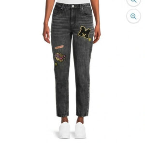 No Boundaries High Rise Mom Distressed Black denim Jeans Sequin Patchwork