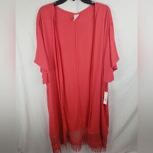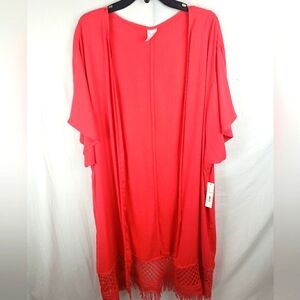 NWT No Boundaries Red Short Sleeve Kimono with Fringe Sz 2XL-3XL